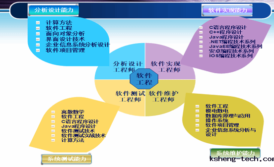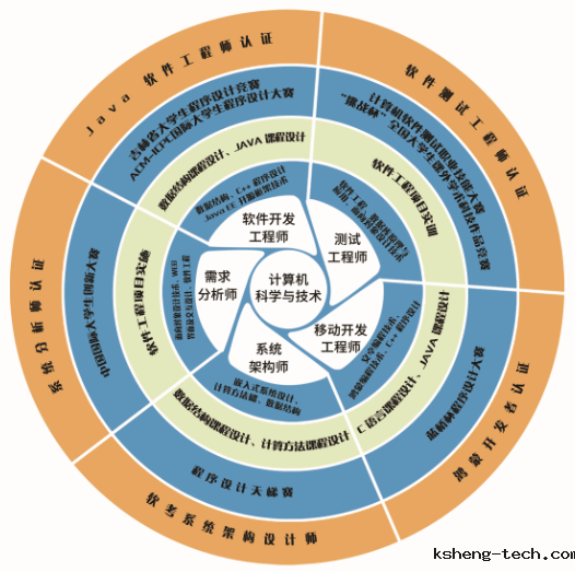 课程体系包括专业基础理论课和专业方向选修课两类。专业基础理论课程有高等数学计算机组成与结构、操作系统原理与应用、计算方法、离散数学、数据结构、计算机图形学、软件工程、面向对象设计技术、C程序设计、H5+JS、信息系统分析与设计、数据库原理与应用等;专业方向选修课程包括网络应用系统开发技术(Java方向和.Net方向)课程、移动开发技术(App开发、微信公众号开发、微信小程序开发)课程、前端UI开发技术(JS、VUE、H5等)课程、和系统维护(数据库管理、应用系统维护、软件测试技术)课程等。